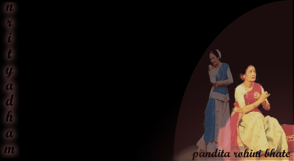 | Rohiniji’s style is unique, drawing the rich and beautiful aspects from the Jaipur and Lucknow gharanas, she has further enriched the art with her in depth multi-faceted scholarship. Her study of music compliments her literary understanding thus creating innovative and highly lyrical compositions. |